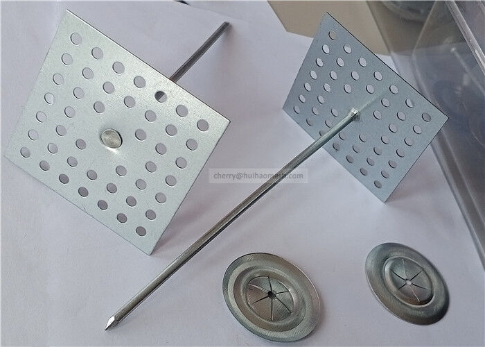 천공 베이스 단열 행거가 핀 접착제 또는 패스너로 고정되면 단열재를 행거에 꽂을 수 있습니다. 꽂으면 단열재는 셀프 로킹 와셔를 사용하여 제자리에 고정됩니다. 셀프 로킹 와셔는 다양한 용도로 다양한 모양과 크기로 제공됩니다.